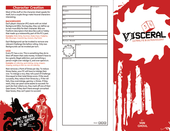 VIsceral is designed with the darker genres in mind. Grindhouse, dark fantasy, neo-noir, mythos, cyberpunk, etc. The freeform nature of the game means that it can be easily tailored to whatever genre or setting you want, but in the future I plan to update the game with optional rules modules to make this process easier.