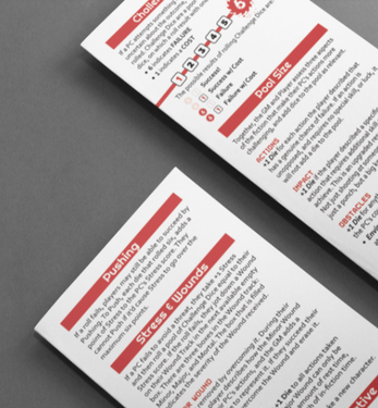 Content Warning: Because players are encouraged to describe actions in detail, there is less abstraction separating the player from the violence their character commits. This can be exciting, but also upsetting. Have a Session Zero to make sure everyone knows what they're getting into, and establish some safety tools like Lines & Veils, or the X-Card before play.